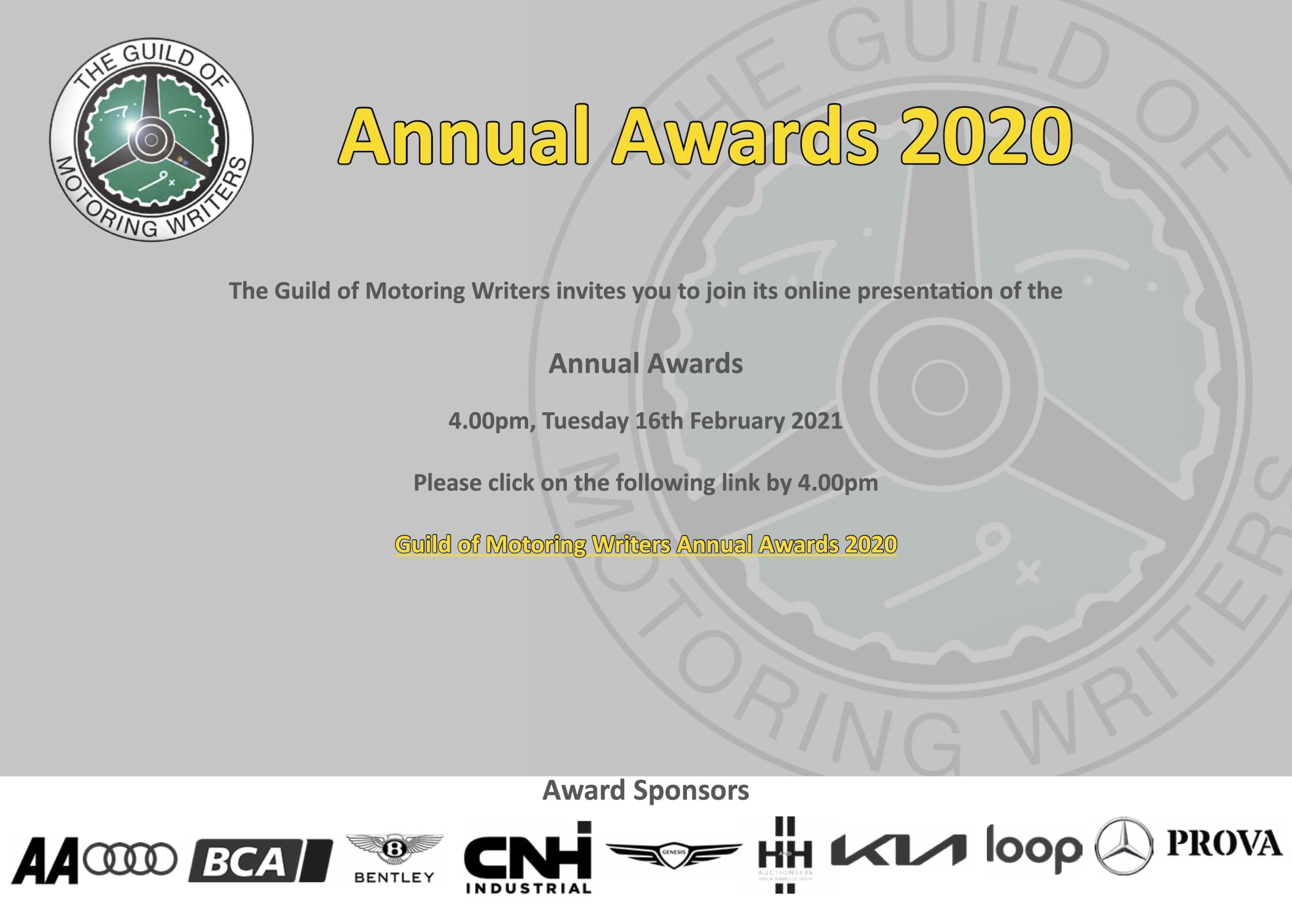 Winners of the Guild of Motoring Writers Awards will be announced in a YouTube Premiere webcast on 16 February, and anyone can join to witness the presentations.